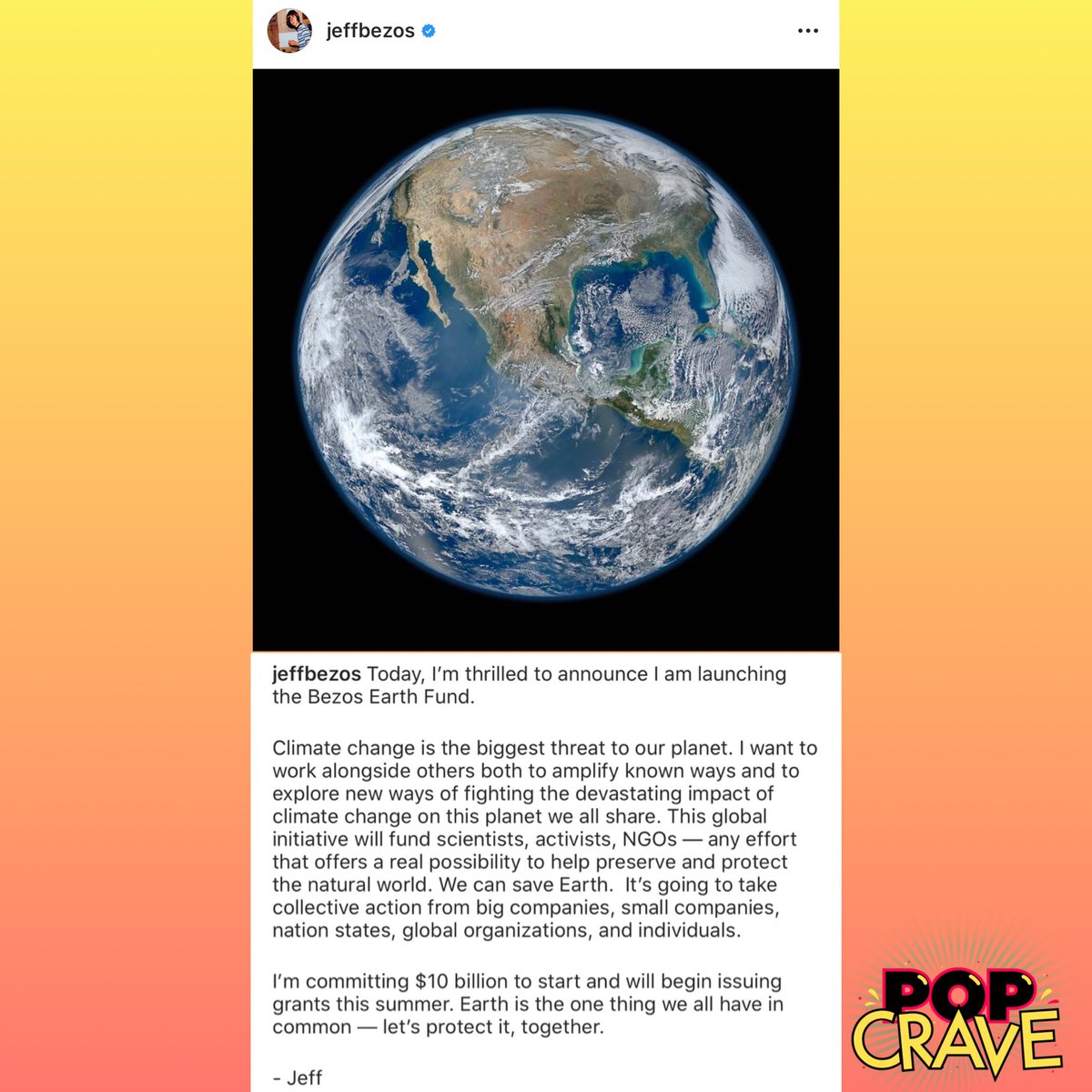 Pop Crave On Twitter Amazon Founder Ceo Jeffbezos Announces He S Donating 10 Billion Of His Money To Launch The Bezos Earth Fund I Want To Work Alongside Others Both To Amplify Known Ways
